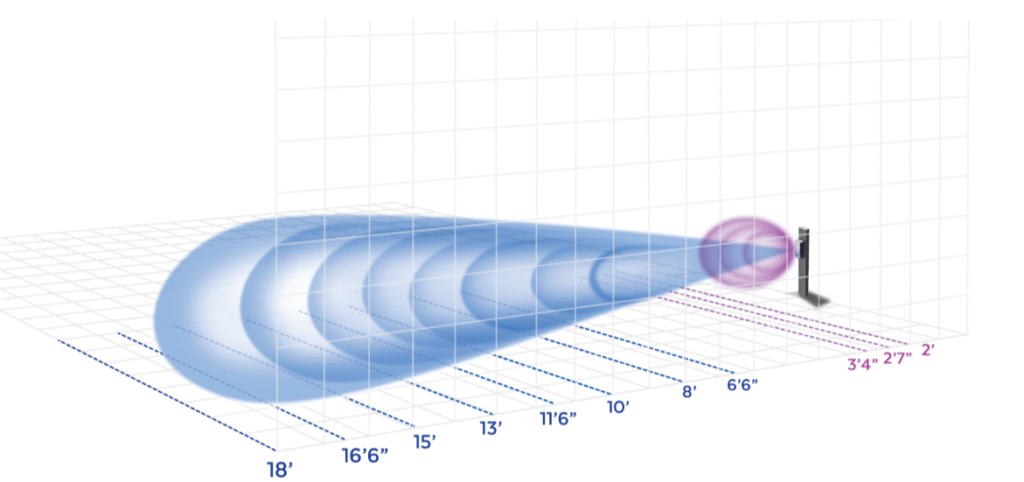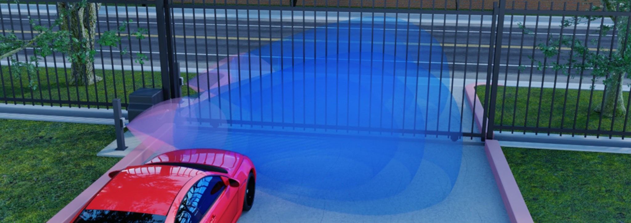 This one is exciting because it may be new to you and addresses a few hassles we often hear about from our customers; it’s a great alternative options! This sensor can be used as an exit or safety sensor and eliminates the need for laying a loop or burying a probe. The virtual sensor shown here is made by Optex and can ignore human traffic, but reliably detects the presence of a stationary or moving vehicle